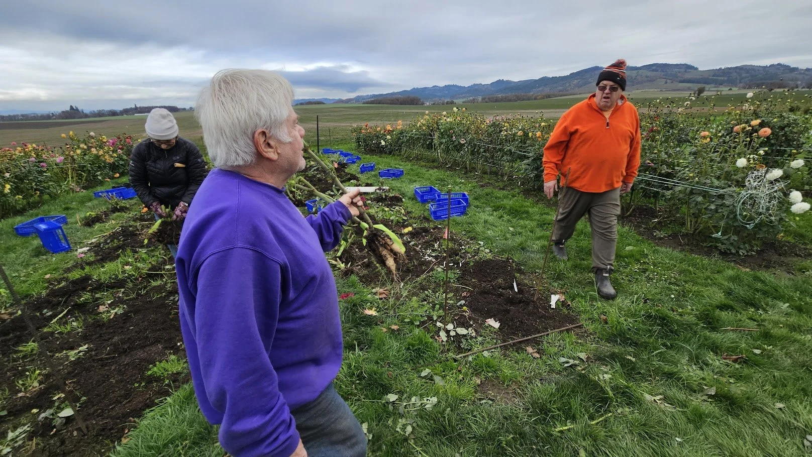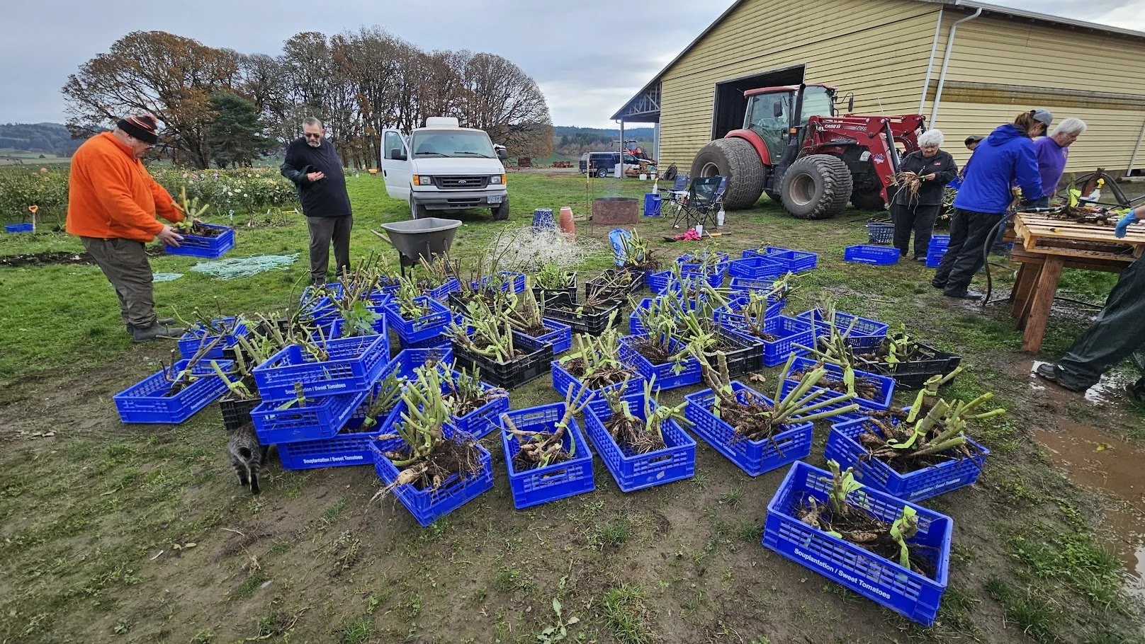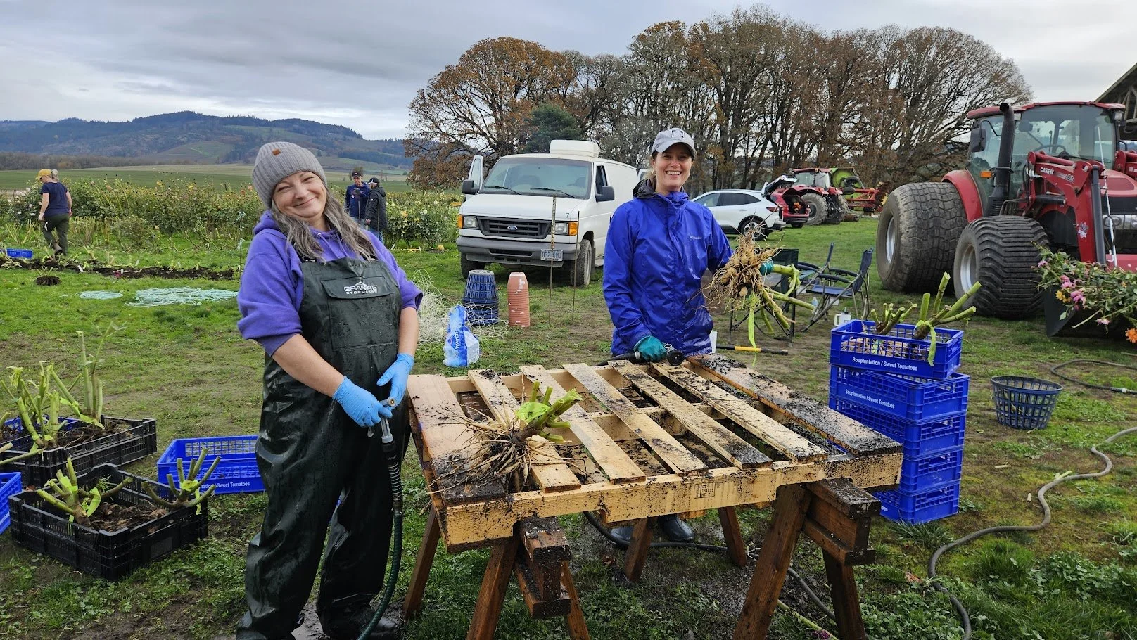Brad & Twyla Rohde and family allowed Portland Dahlia Society the room on their farm to plant close to 275 Dahlias for the club to use for fund raiser events for 2026. Several members gathered to dig and wash the dahlias. Fun was had by all.