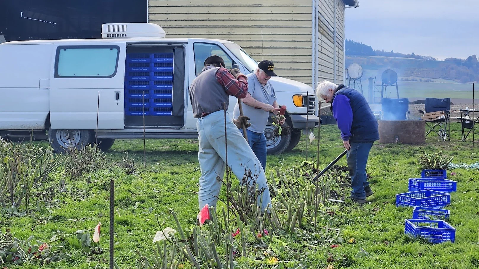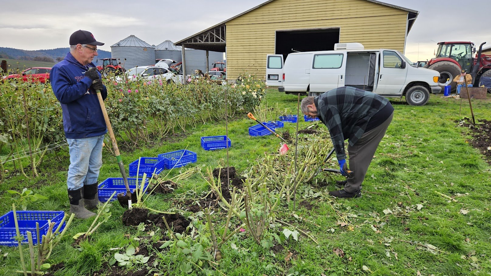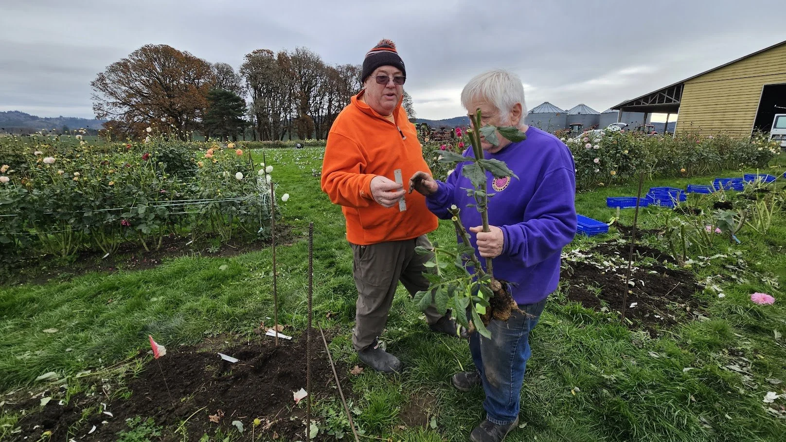 Brad & Twyla Rohde and family allowed Portland Dahlia Society the room on their farm to plant close to 275 Dahlias for the club to use for fund raiser events for 2026. Several members gathered to dig and wash the dahlias. Fun was had by all.